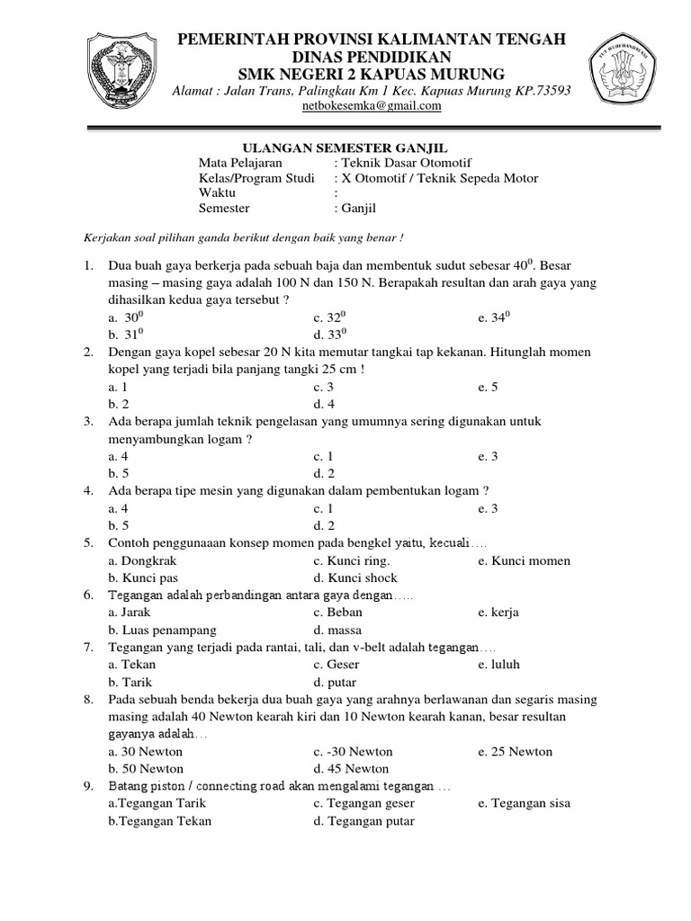 Contoh Soal Tdo Kelas 10 Semester 2 Beserta Jawabannya - Kisi Kisi Dan Soal Teknologi Dasar Otomotif Kelas 10 Jawabanku Id / Berikut, contoh soal pg b.