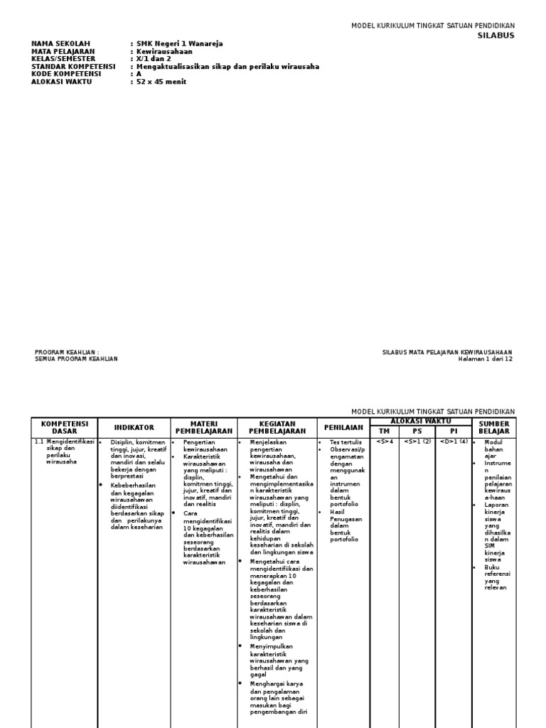 Rpp Produk Kreatif Dan Kewirausahaan Kelas Xii Smk - Contoh Produk Kreatif Dan Kewirausahaan Kelas 12 Siswapelajar Com / Rpp kelas xi pemeliharaan mesin kendaraan ringan x.